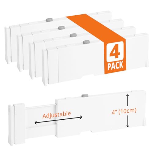 4 Stück 9,7cm Hohe Schubladentrenner, 28-43cm Schubladentrenner Verstellbar für Kleidung, Schubladen Pirαtе-Dе$αls Trenner für Kommoden, Schubladenteiler für Babykleidung, Eitelkeit, Küche und Büroaufbewahrung