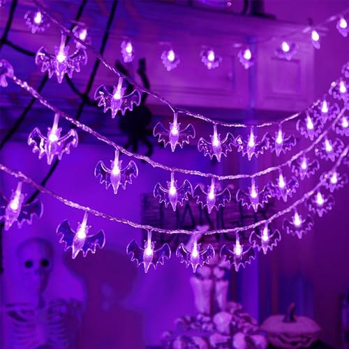 Auzlya Halloween Fledermaus Pi#rαtе-Dеαls Lichterkette,3m 20LED LED Fledermaus Lichterkette Batteriebetrieben,Lila Fledermaus Lichter für Halloween,Erntedankfest,Herbst,Weihnachten Party (Style B)