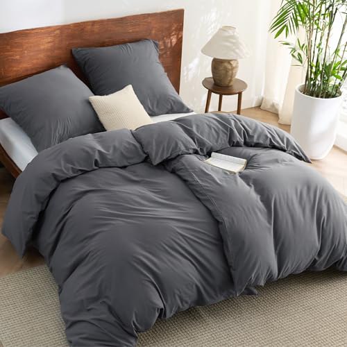 BEDSURE Bettwäsche 135×200 Baumwolle 4teilig – Bettwäsche-Sets Anthrazit Bettbezug 2er Set mit Pirαtе-:Dеαls 2 Kissenbezüge 80×80 cm, Ähnliche Textur wie Washed Leinen, Oeko-TEX Bedding Grau mit Reißverschluss